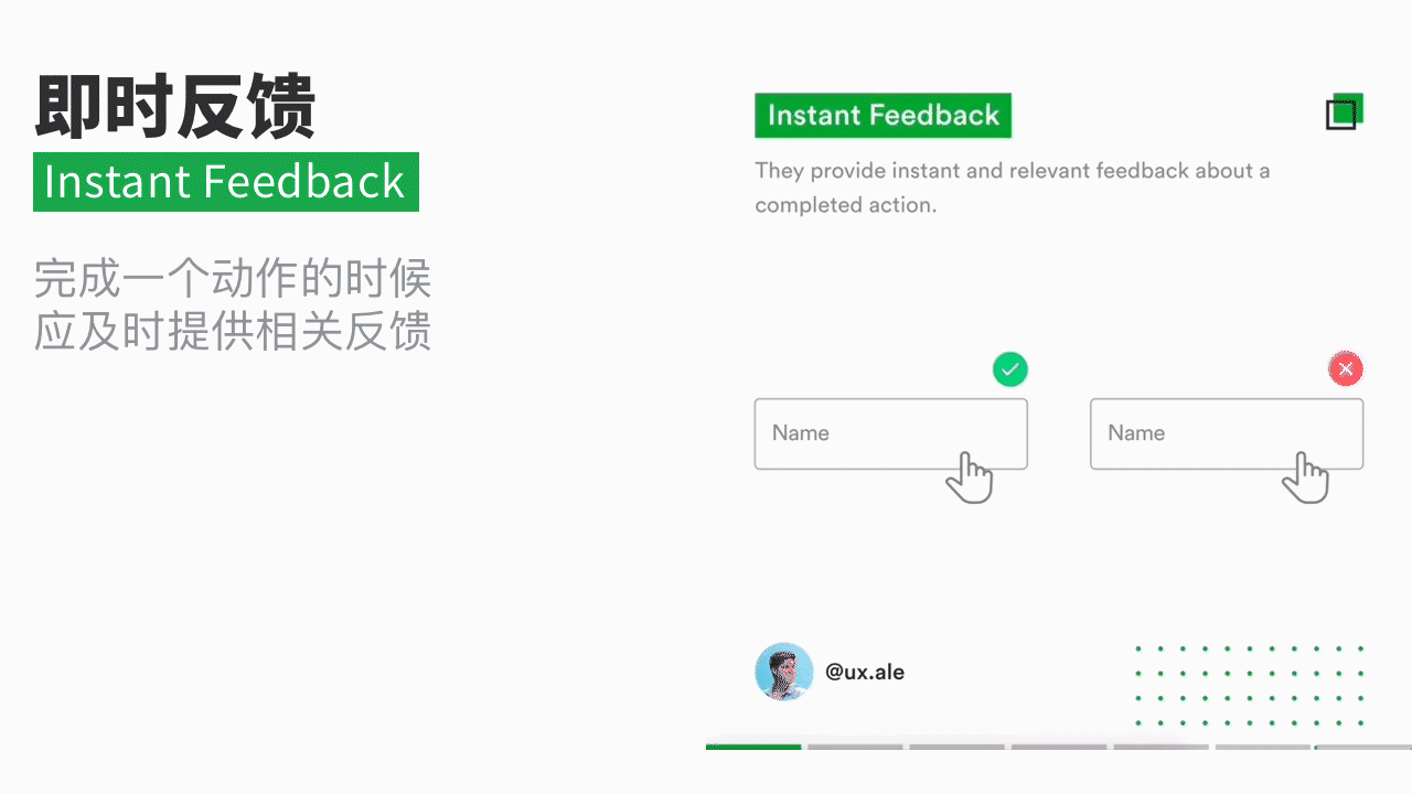 1.即时反馈(在完成某个动作的时候应该有即时的反馈,这样用户可以明确的接受到操作之后的反应,不至于一脸茫然,降低体验)