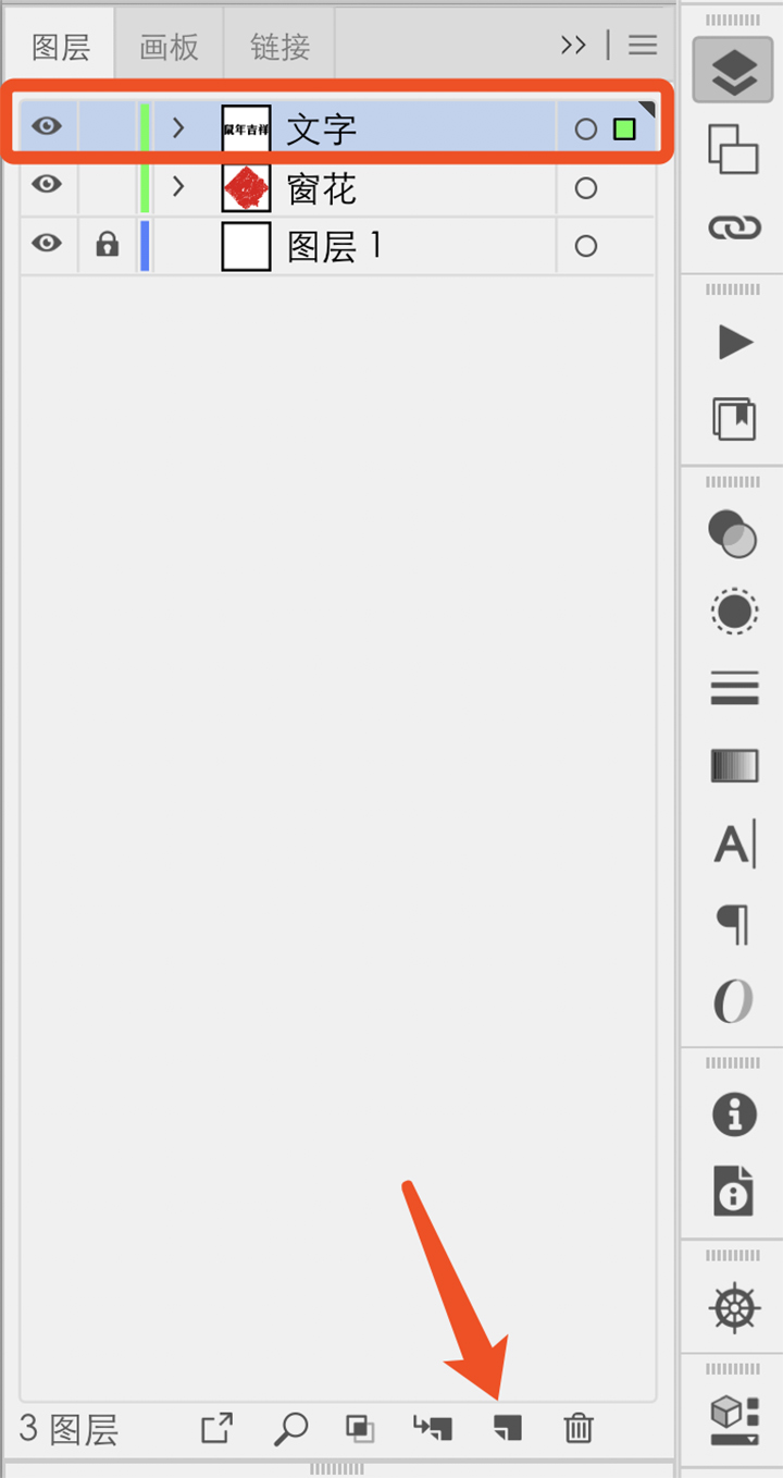 6、单击定位按钮,全选中文字(图层分类的好处)。