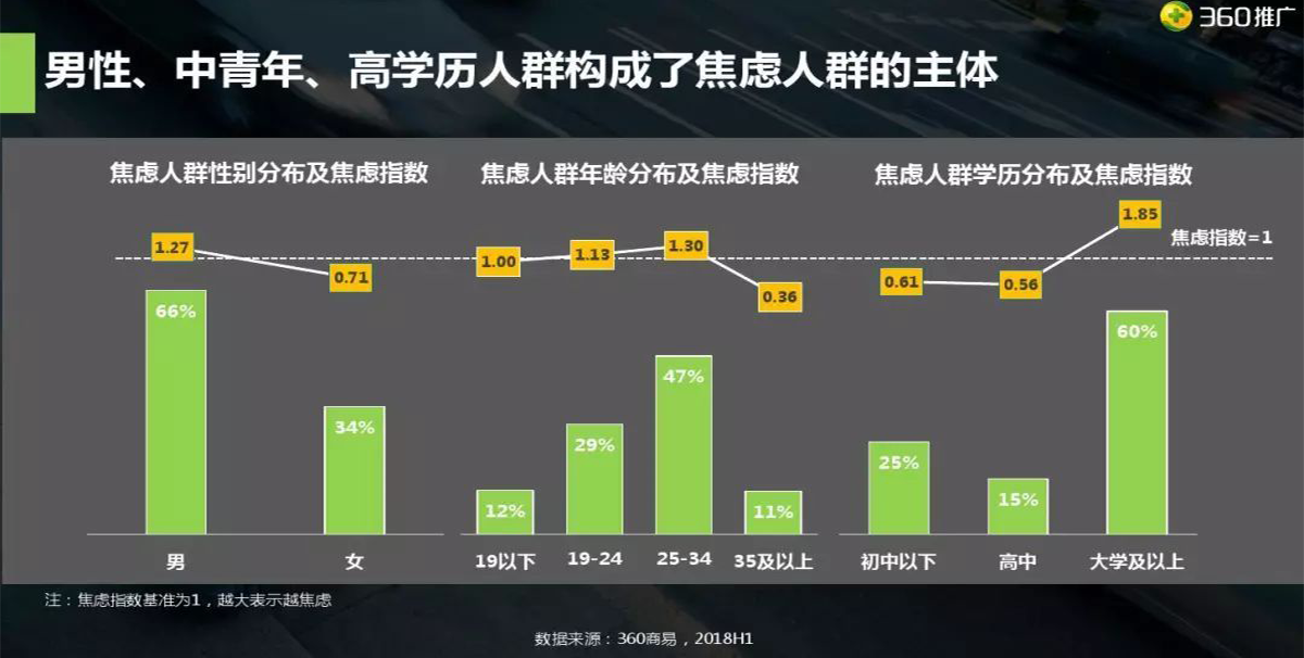 看到这里,分析发现上进心、焦虑是用户身上的内部触发点,其中负面情绪-焦虑、恐惧的威力更强大。看一组数据分布图: