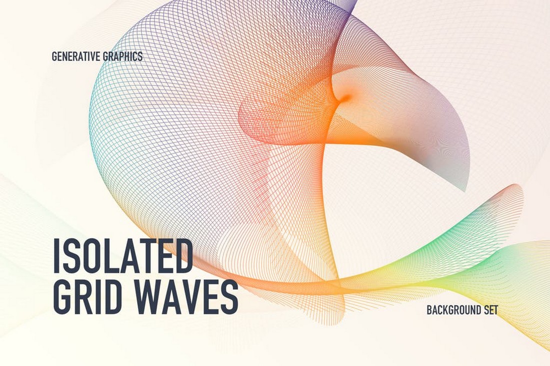 具有网格风格的波浪设计,此包中的背景以JPG和透明PNG文件格式提供。 这些背景的3D设计使其非常适合与技术相关的设计。
