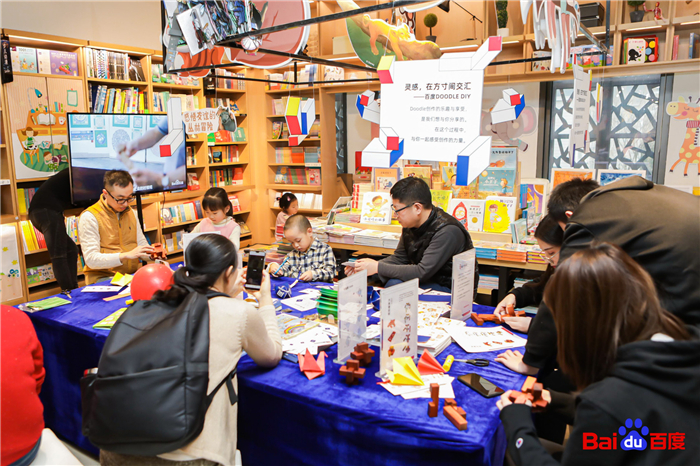 【灵感,在方寸间交汇】如果说这些 Doodle 仅仅是看,那难免会留有遗憾。所以我们特设互动专区让艺术展观众参与其中。大家在这里可以玩榫卯、折纸鹤、得濒危动物卡片、领取鼠年小熊玩偶等。