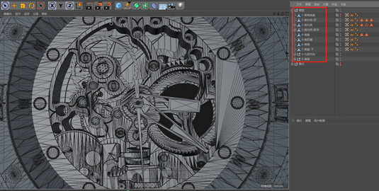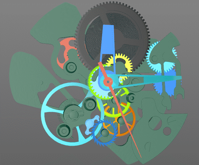 手表内部运动主要包括指针及齿轮,本节利用XPRESSO将其链接,最终表现出分针、时针的平滑转动、秒针的间歇转动。