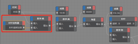 b. 秒针旋转加倍与时间相乘,连接到链路中: