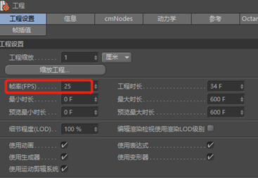 6. CTRL+D查看工程设置中的帧率,设置为25,那就是25帧秒针转动1格,总共360度,5*12=60格,每格360/60=6度,那就是秒针1秒钟旋转6度。