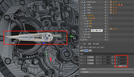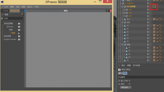 7. 下面设置分针和时针的旋转XPRESSO驱动,那就相对比较简单了;