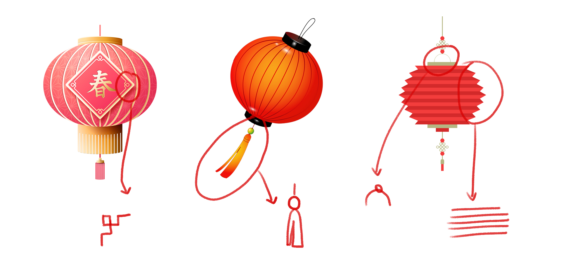 再用这个方法,画一些春节相关的元素呗,头脑风暴!