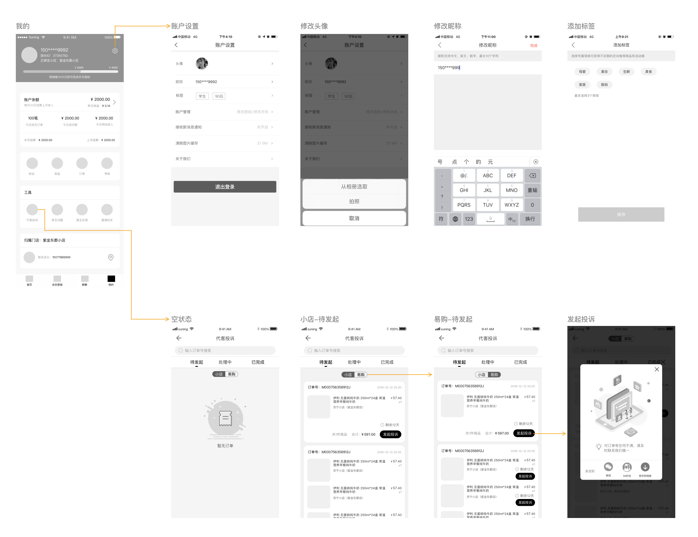 (3)12.10~12.13:10号汇报通过后,根据业务需求将此app所有页面流程串起来,交付原型图;