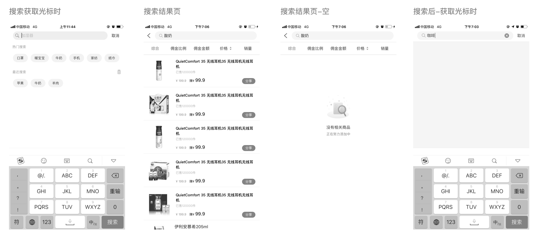 搜索支持关键词搜索,搜索结果全部来自团长所属店铺或前置仓的商品。