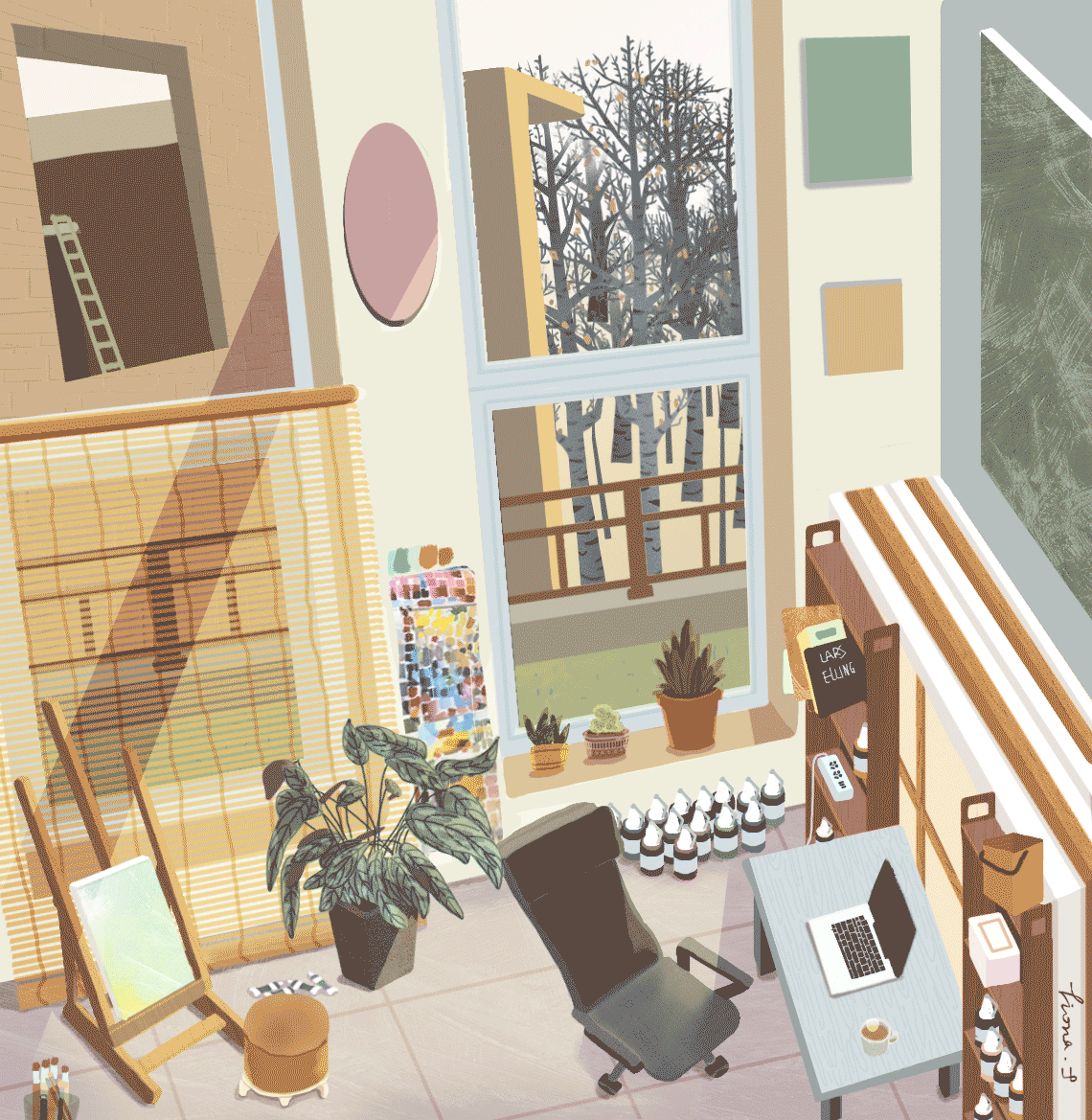 2017年伴随着更换工作、毫无方向、骚扰坚持在搞艺术画画的同学们、焦虑、厌食、下降的体重、肿的跟猪头一样的立志牙、夜跑等等。解决了几项大事,又在2018年5月,更换了画室位置,小小的装修了一下下。