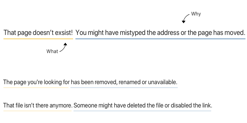 因此,在404页面上需要请简单直接告诉用户可能导致问题的原因。