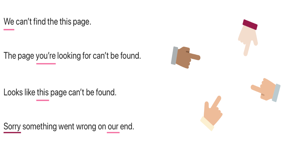 出现问题是用户的错还是你的错?确定错误原因可以让你快速的帮助用户找到问题的解决方案。大多数错误的原因是由公司而不是用户造成的,所以注意你使用的代词。在措辞上尽量使用"我们",让用户感受到你的歉意。