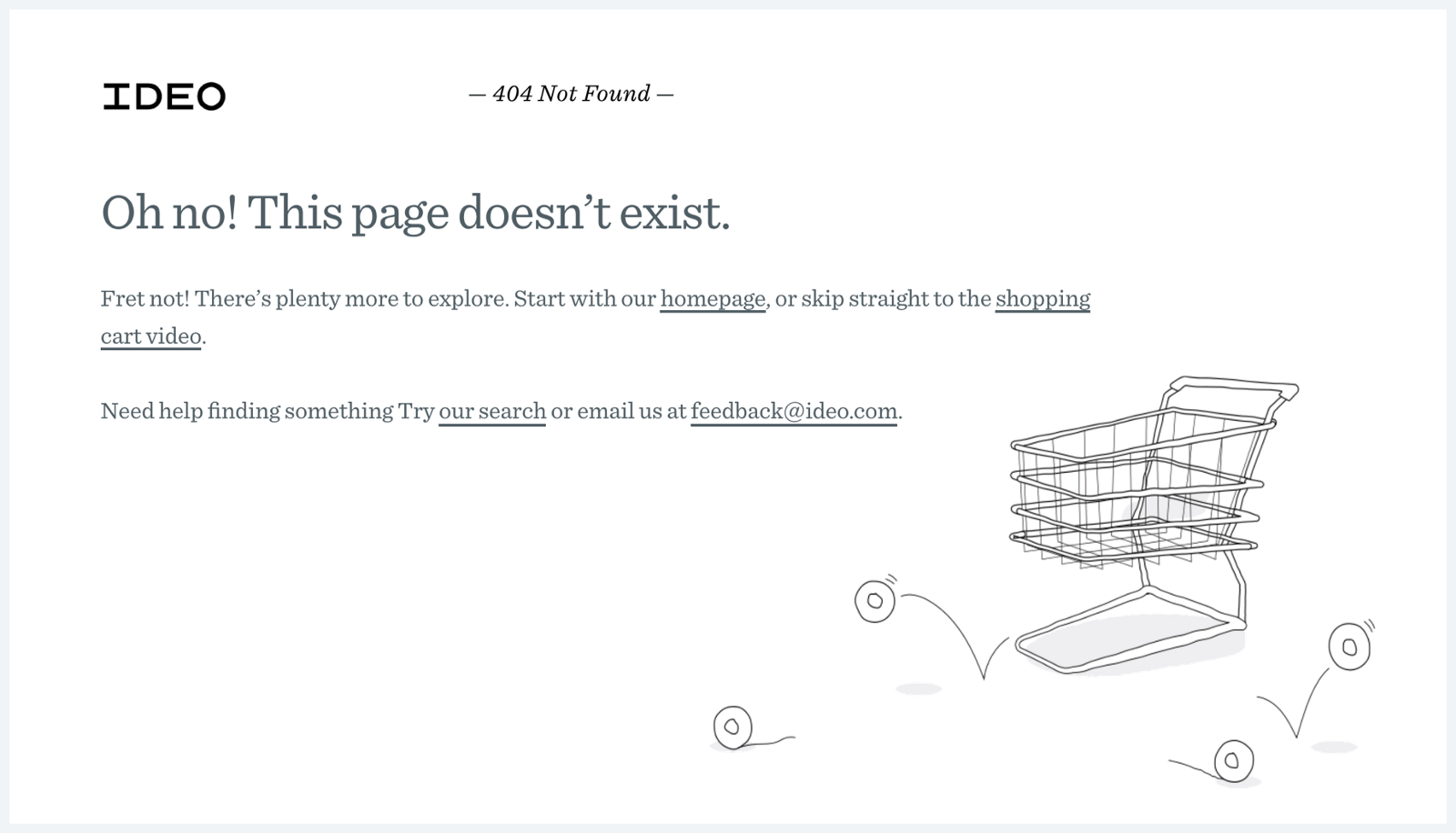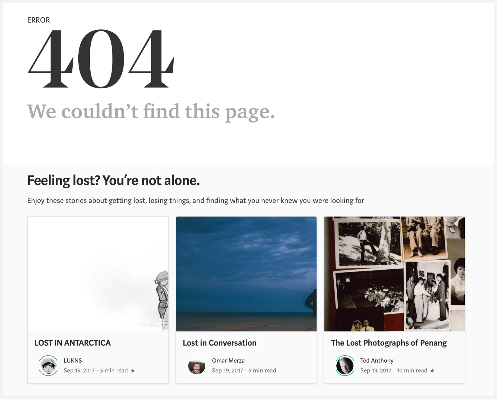 404这个页面可以做的比我们想象中的更多。一个可爱的插图能带来愉悦的心情,但我们需要确保我们可以帮助用户解决他们在那一刻遇到的问题。