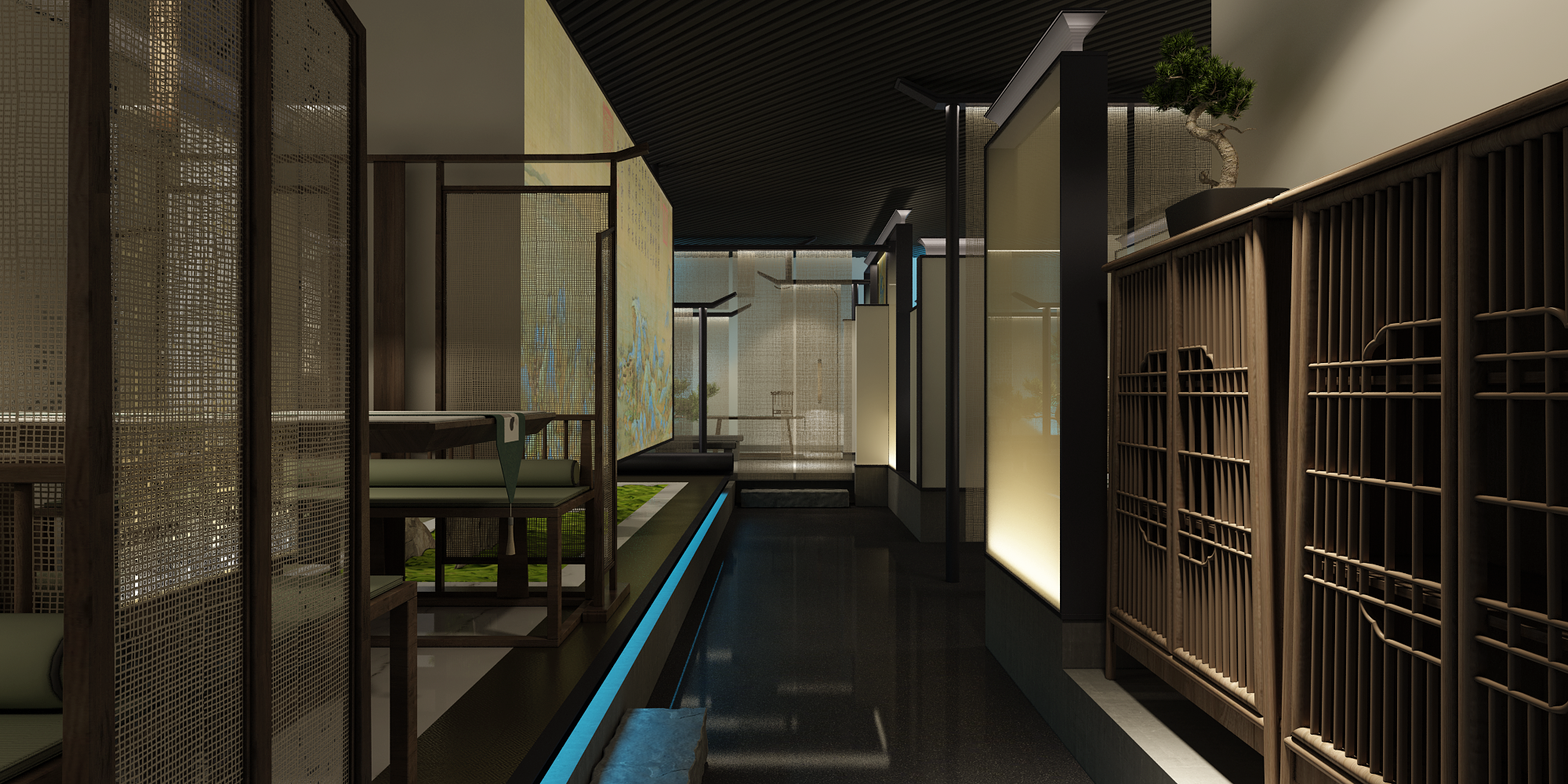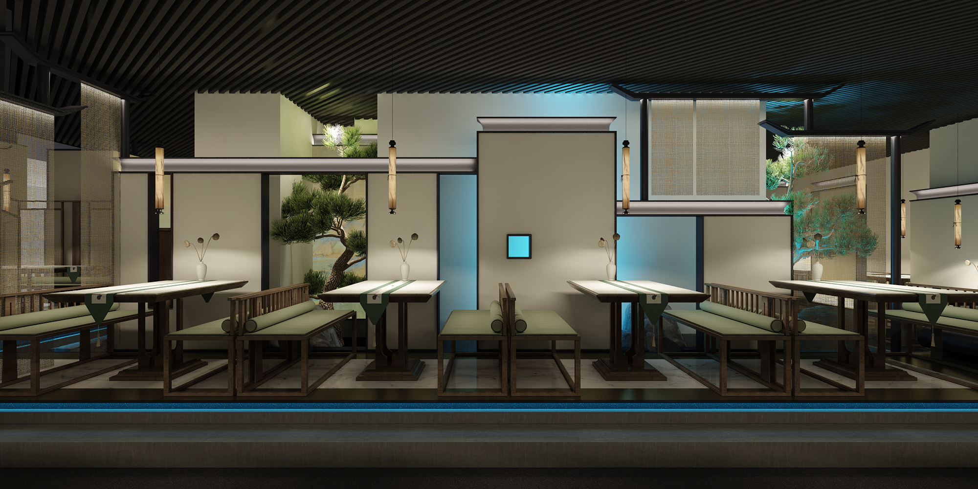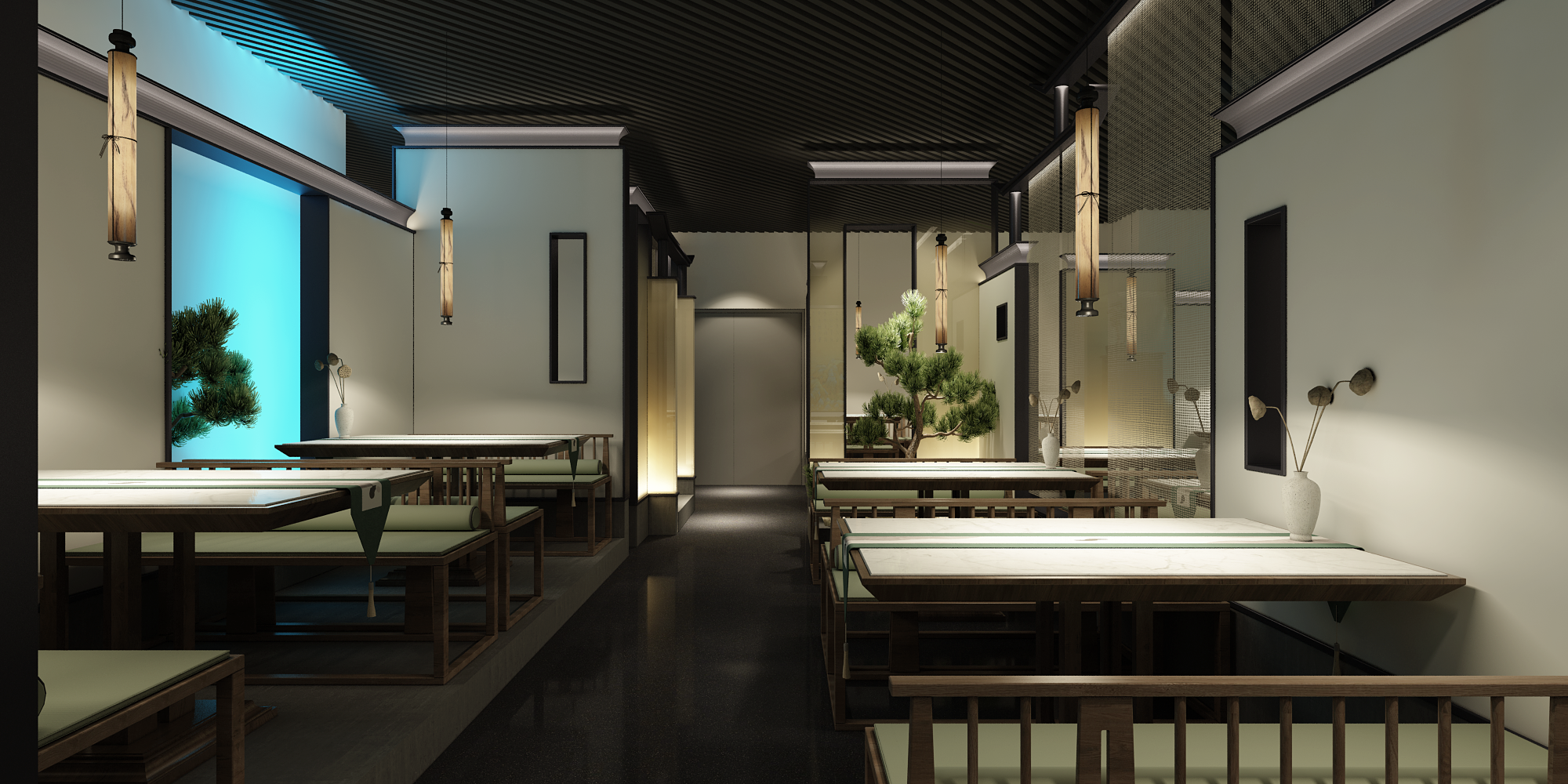 上海七原设计团队联手绿茶餐饮集团打造的以万松书院为主题的新中式餐饮空间
