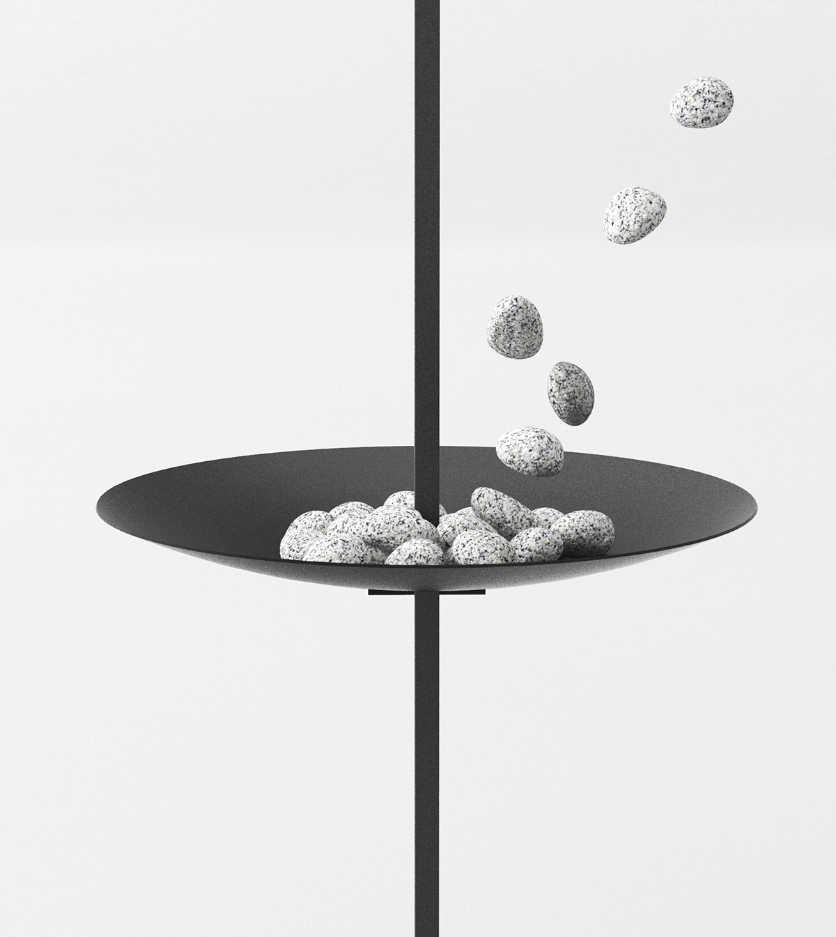 通过增加或减少托盘上鹅卵石的数量,就可以控制灯光的高度。用户可根据需要进行自我调节高度。