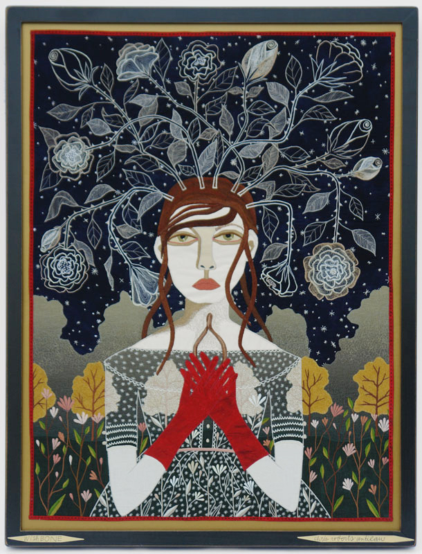 Chris Roberts是一位自学成才的天才艺术家,她独辟蹊径地将刺绣和贴布结合在一起,让拼贴画具有更丰富的色彩以及空间感,不论是动物还是场景,都有种现代主义绘画的味道。Chris Roberts是一个典型的生活于繁华都市却向往森林童话的现代人,她的作品充满了奇异的幻想和艺术感。从画稿的构思、布料的甄选到正式拼贴刺绣,往往要耗时几个月才能完成一幅作品。Chris Roberts在贴布画的基础上加入大量的刺绣,每幅作品所用到的刺绣手法多达十几种,有时仅是刺绣就要耗时两三个月。Chris Roberts的作品针线细密匀称,不露边缝让整幅刺绣布贴画形态毕至、绒彩夺目,堪称为真正的艺术家大作。