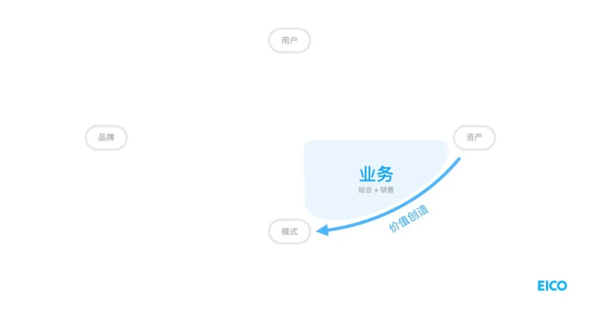 「资产」与「模式」的过程中刷新出一个业务,你的资产用这种模式被提交出去了,就是你的业务。