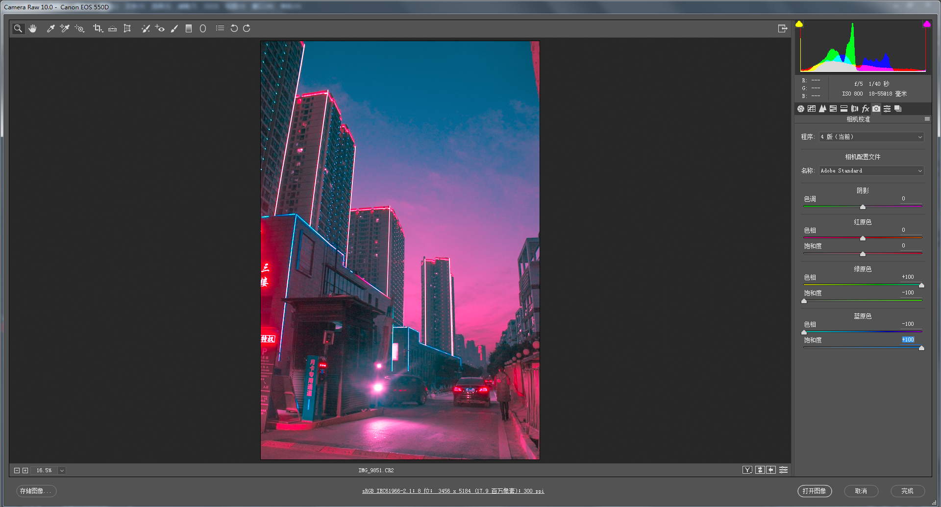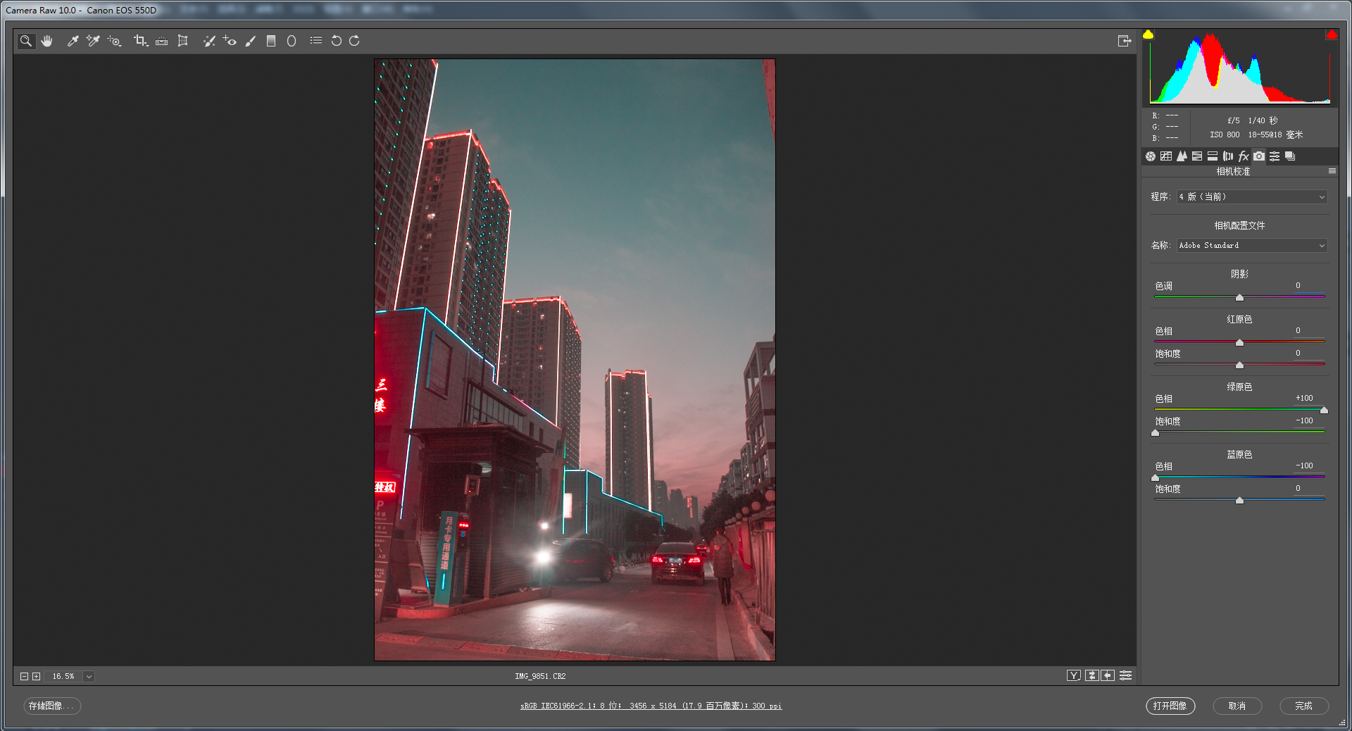 4,基本上差不多了,剩下的是一点点微调,看个人感觉了。我这里又回到相机校准里将蓝通道的饱和度调满了。