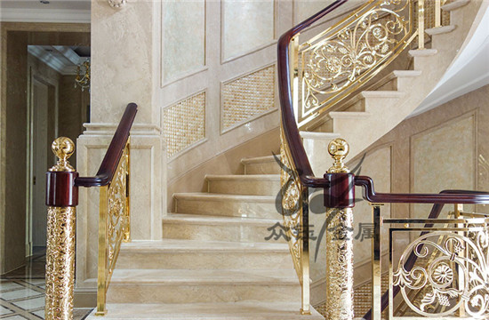 别墅铝艺立体楼梯护栏 欧式弧形铝雕花楼梯