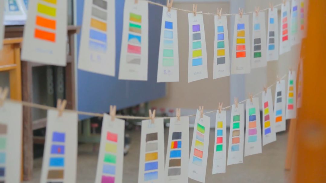 当每个人的作品完成后,用小木夹进行晾晒展示的时候,大家才惊奇地发现:虽然共同生活在一个地方,但每个人对色彩的记忆以及美的感知,是完全不同。
