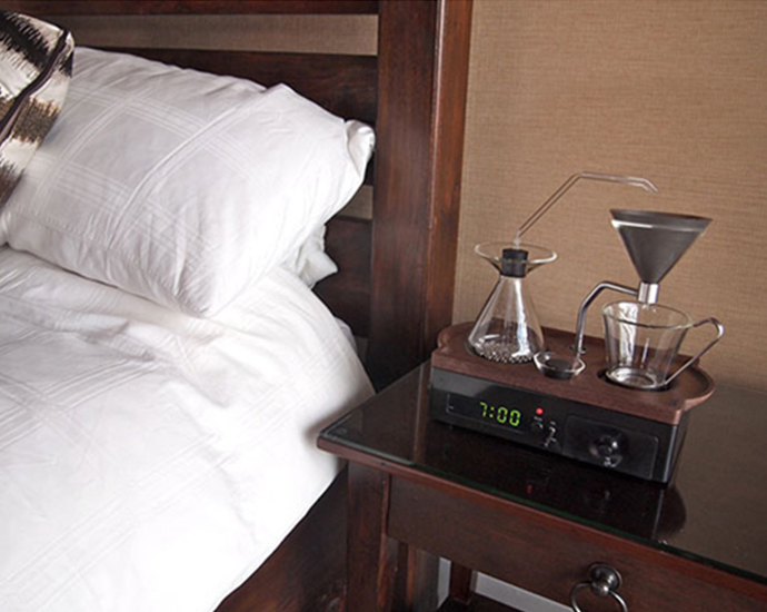 早上起来喝一杯咖啡,和已经成为了很多上班族的生活规律。因此,Joshua Renouf设计了这个“叫醒你的咖啡师”咖啡机外观设计,它是咖啡机和闹钟的完美结合,为广大的上班族用户节省很多的时间。在使用它的时候,用户只需要在前一天将它设置好,它就会在早上闹钟响起之前将咖啡沏好。在闹钟响起的时候,它会通过听觉和嗅觉两种方式唤醒用户,更加的方便,也更加的使用。