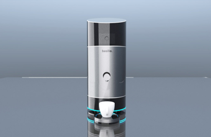 Basilio是一款触屏智能咖啡机,相对于一般咖啡机其独有的触屏功能提供了前所未有的简化直观的交互。Basilio 触屏咖啡机顶部的触屏模式一键操作,简单明了,不需要过多繁杂的步骤就可以喝到美味的咖啡。它还可以连接到用户的智能手机,可以用手机实现远程操作,这样如果你在下班的时候想喝美味的咖啡,手机一键操作,进门就可以喝到热腾腾的咖啡了。此外,还有一单一的数字时间显示,可供用户随时查看时间。