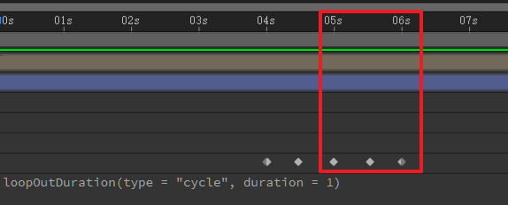 duration = 1表示循环该套动作的最后1秒内的动作。(如下截图,只循环红框内的关键帧)