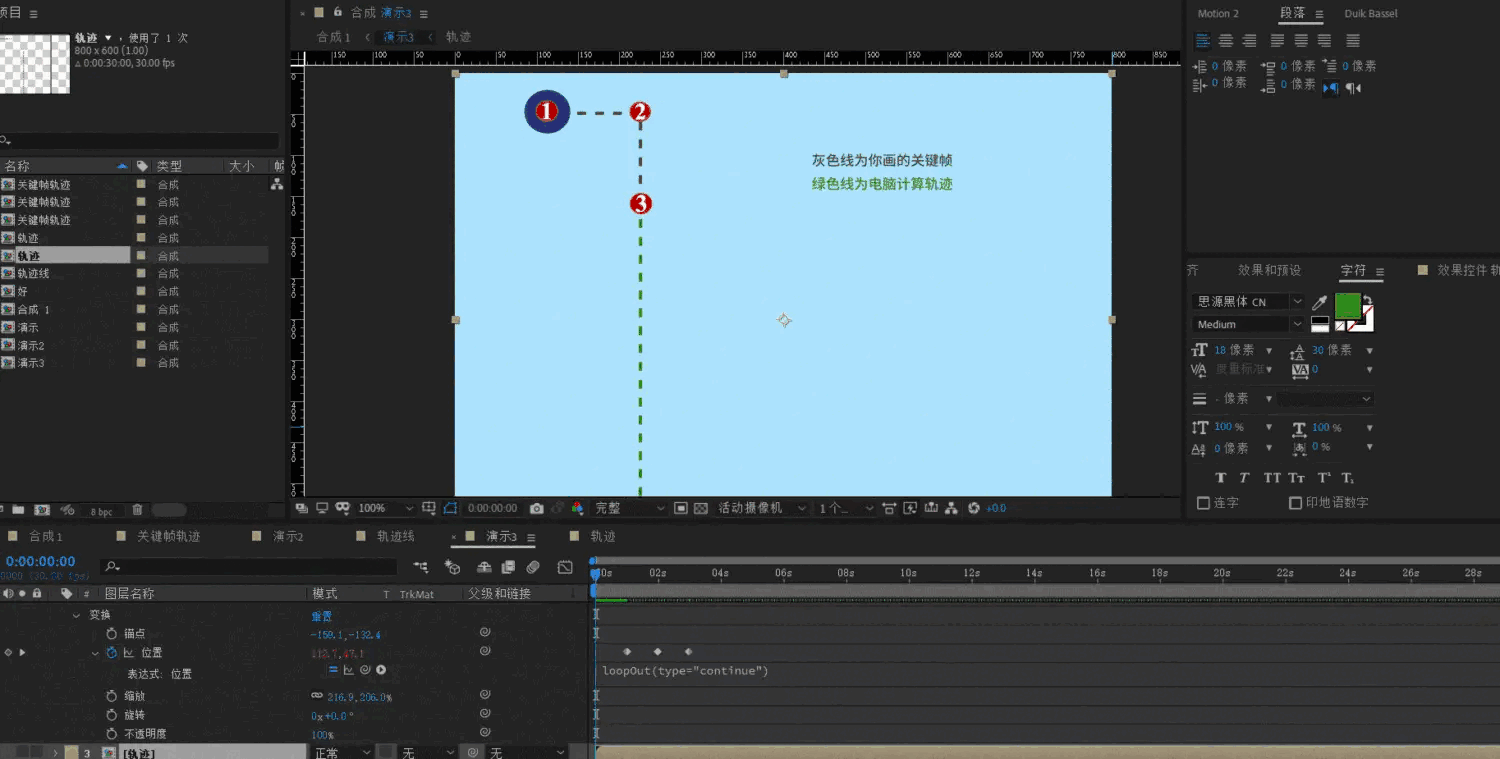 那它循环模式就是123,3+n...直至合成画面外。(如下GIF图)