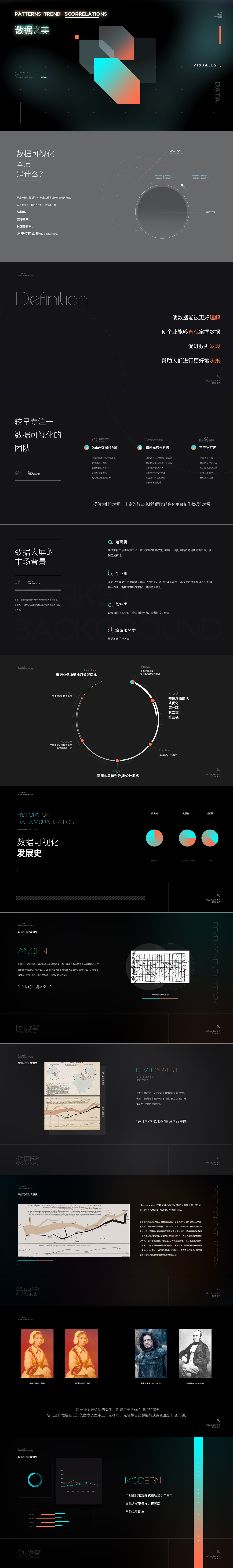 在进入主题之前,我给大家介绍一下数据可视化,在刚开始接触大屏的时候我对这个概念也比较迷茫,其实上基于设计层面中,数据可视化是指运用视觉的方式呈现数据,有效的图表可以将繁杂的数据简化成为易于吸收的内容。