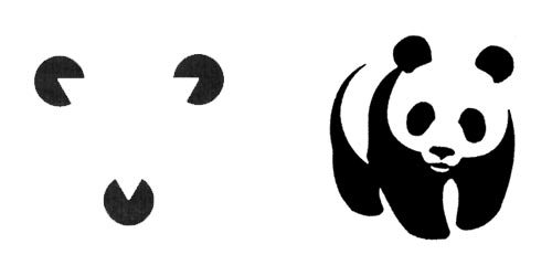 在上面左边的图片中,你应该看到一个白色的三角形,尽管这个图像实际上是由三个黑色的人形组成的。在右边的图片中,你可以看到一只熊猫,尽管这个数字是几个随机形状。看到三角形和熊猫比试图弄清楚每个部分更简单。