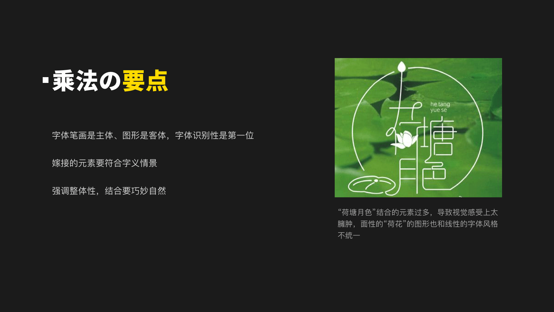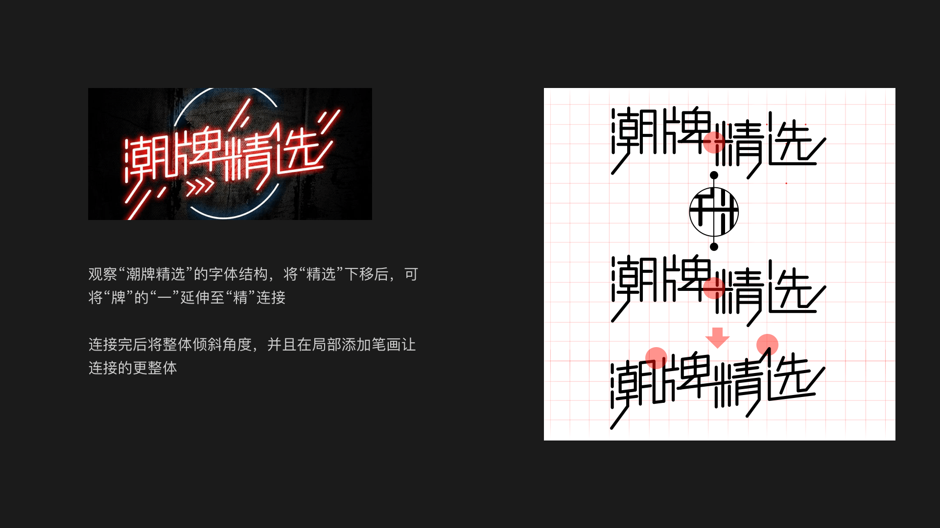 强调整体性,结合要巧妙自然,过度的嫁接会让字体整体显得生硬和割裂。