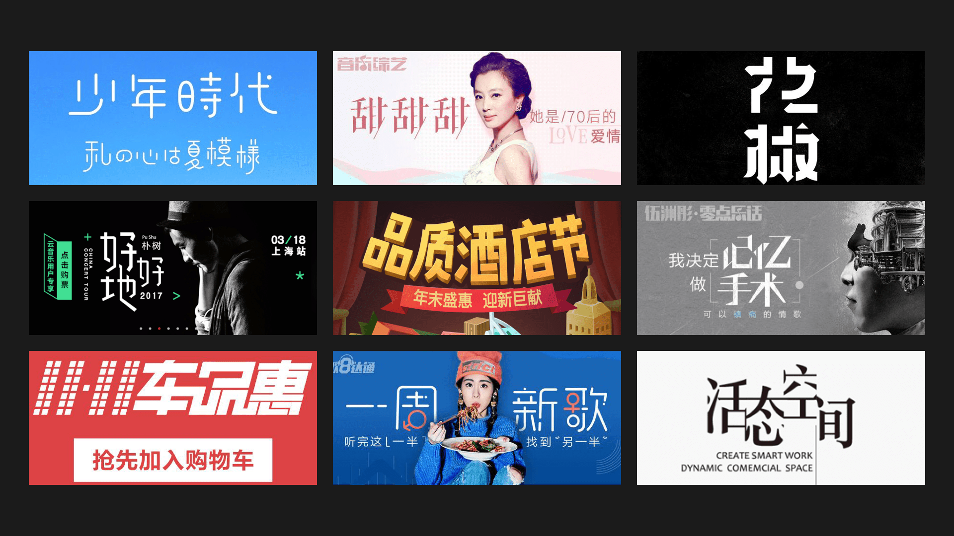 在“记忆手术”的banner设计案例中就使用了“减法”的笔划设计。