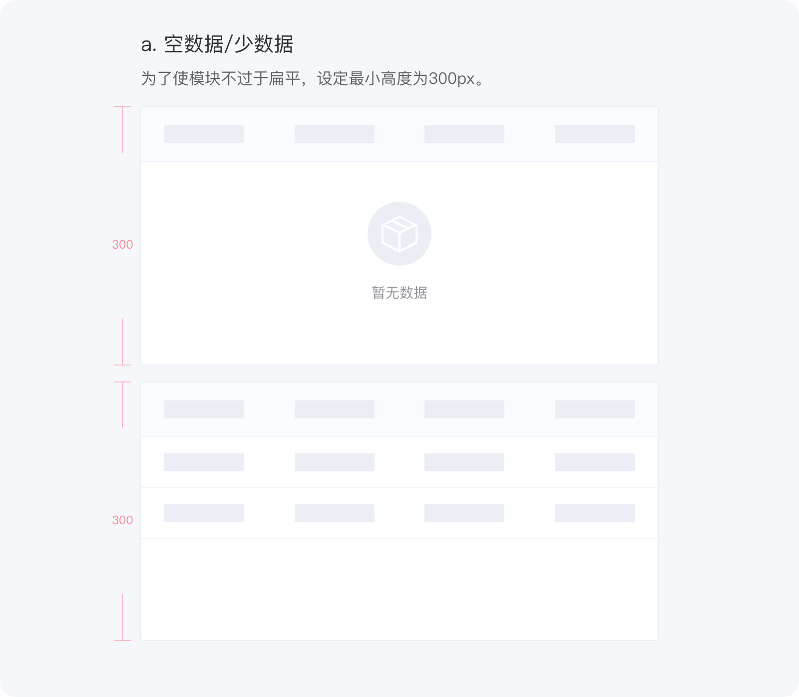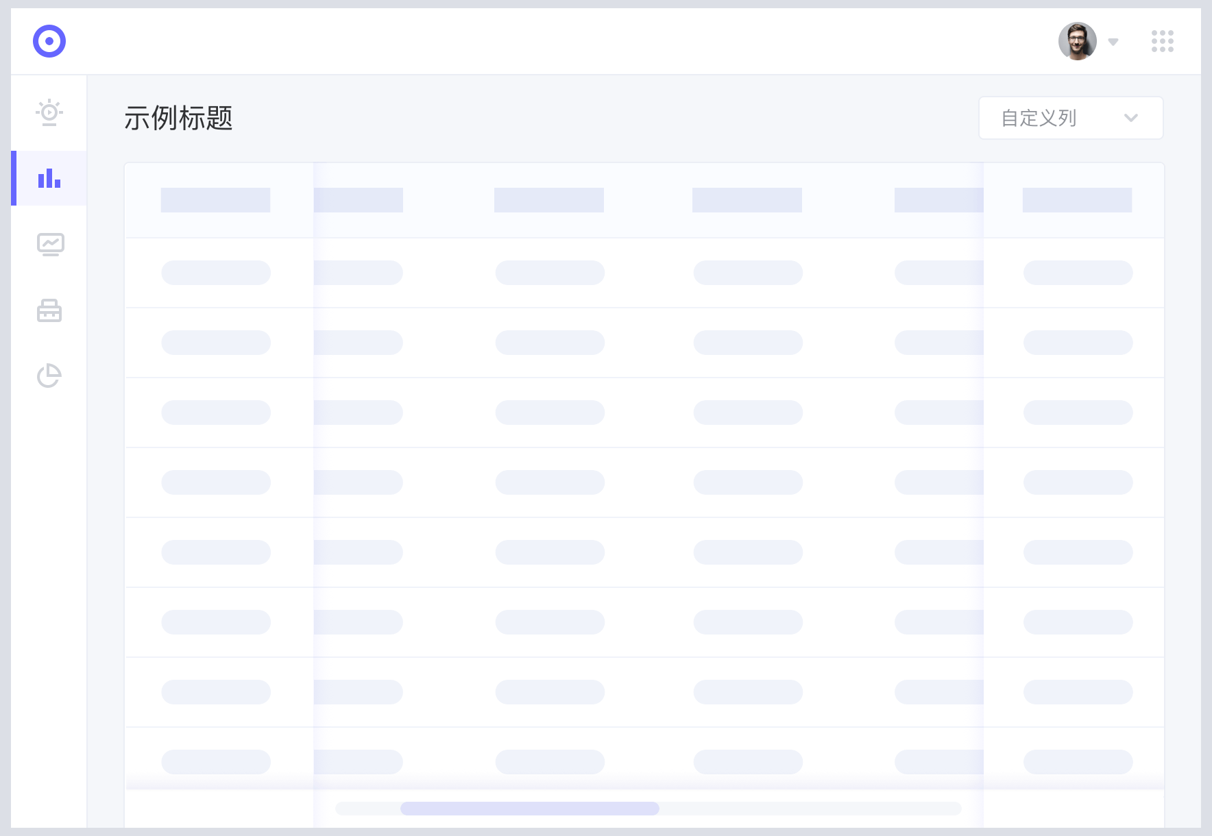 适用于数据行较少的场景,可在模块内纵向滚动查看数据行,模块最大高
