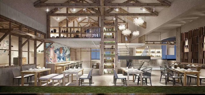 丰富空间层次的同时做到对营业区域的细分,设计展架为她的瓷器找到归宿。主营业区域为三层,对就餐区进行合理的规划。