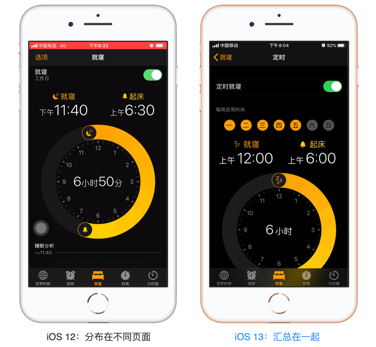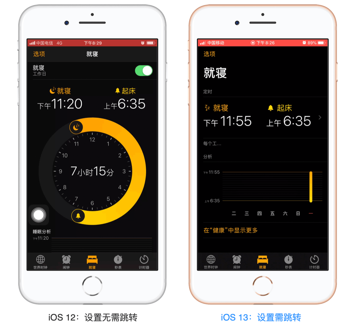 在我个人看来,就寝的初始页面,应该和闹钟一样,主要用于查看信息,而不是编辑信息。