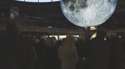 这个超大直径的巨型月亮装置,让你近距离观赏月球,触摸月球,与月球合影。