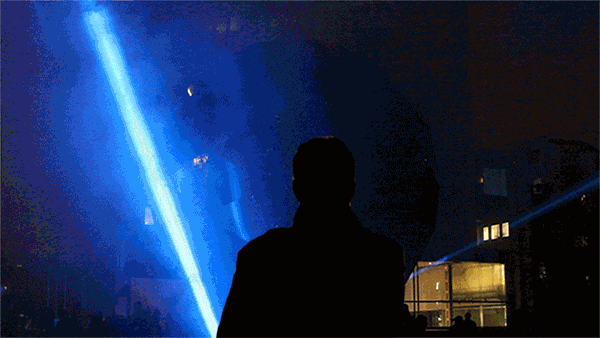 一个9米高的圆盘化作‘光碟圆月’(Disc),为整个空间的气氛增色不少。这个“人造月亮”是用特殊的道路工程油漆上色,涂料里含有反射性颗粒,因此这轮圆月在夜色中显得更加炫白夺目。