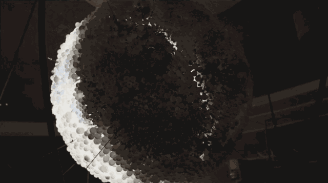 主要用了5500个灯泡,把它们变成了发光的球体,挂在一个拱门结构上。底座是一个木制的平台,公众可以推动下面的十字转盘来操控,转动把手来实现月亮阴晴圆缺的变化,似乎是在探索这个“奇异而吸引人的天体”,令人惊讶,也令人愉快。