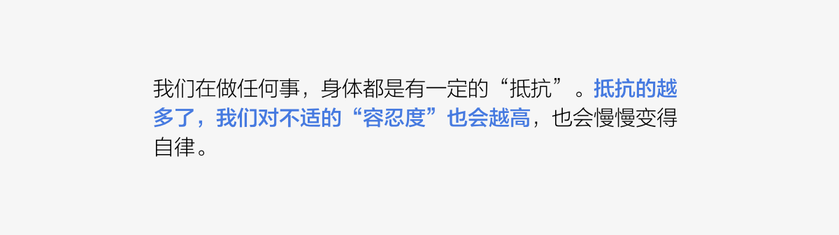 抵抗的越多了,我们对不适的“容忍度”也会越高,也会慢慢变得自律。