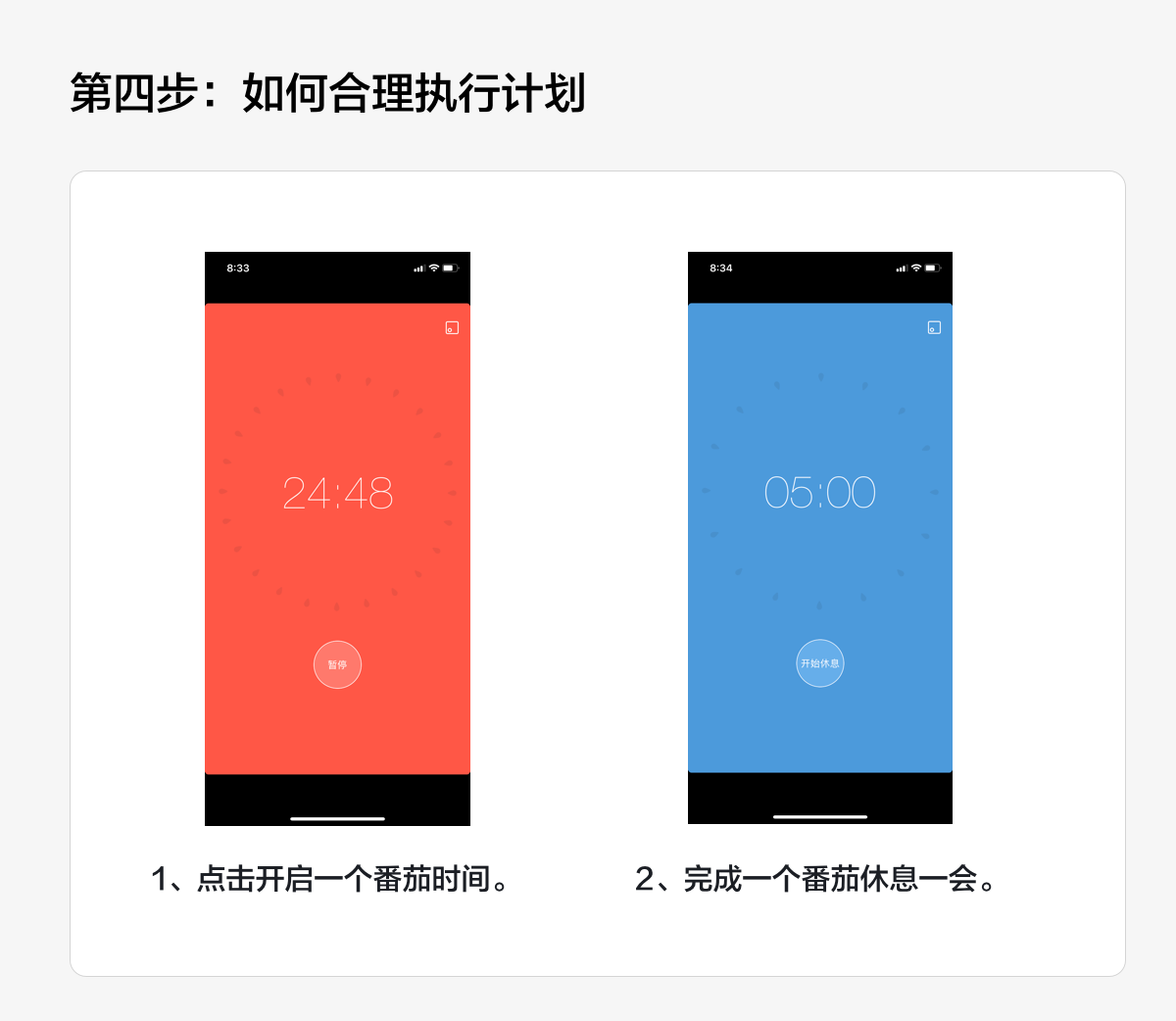 所以我们在完成计划和工作的时候,可以适当的开启,每完成一个番茄可以适当休息一会,保证我们头脑的清晰。当然,这个也是因人而已,有些人一次专注的时间可以更长,这个需要大家灵活的变通。
