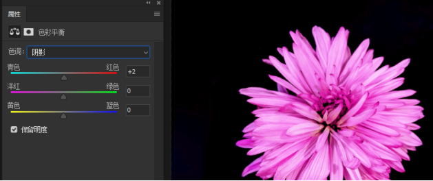 4、使用色彩平衡将花的整体色调体现出来(如下图所示)