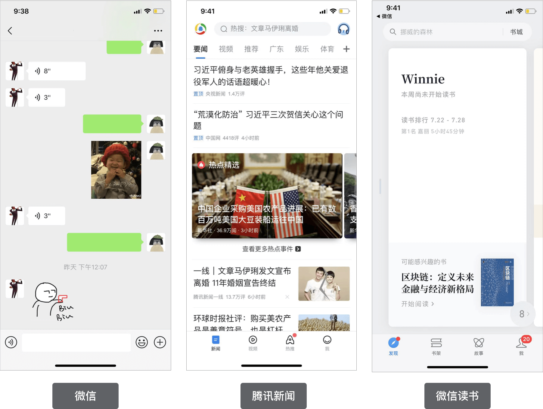 市面上以文字为主的app。如:即时通讯,新闻类,读书类,都是以白色底为主要基调。深谙其道理,因为白底黑字拥有最好的可读性。