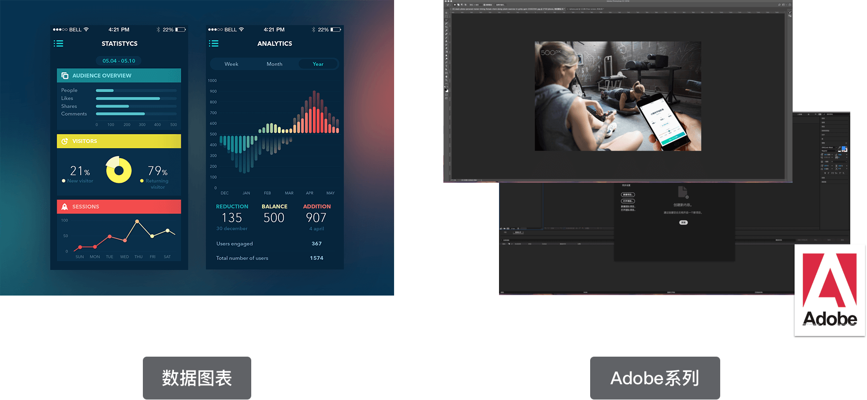 所以,深色背景更适宜于展示图片、数据图表。在良好的布局和组织结构下,黑色能够显著的提升其他视觉元素的表现力,让内容更具有吸引力。