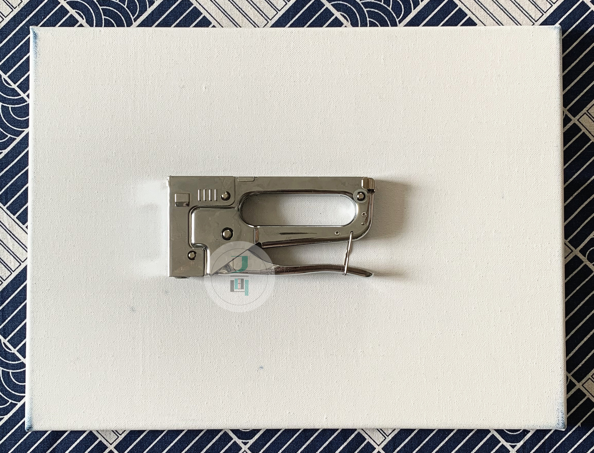 如果将钉枪轻轻往下按压,拿走钉枪后,画布出现明显凹痕,说明画布偏松,画布偏松时不建议拆掉重新绷。因为画布偏松对作画没有太大影响,只是手感不佳。没必要这么费事。