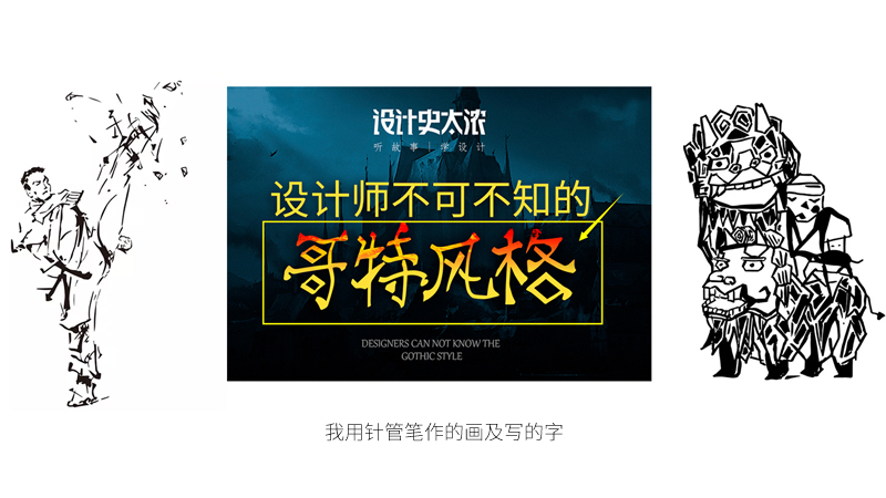 而第一名基本是最常用的,因为它完美满足了三条标准,但这里肯定有同学会发问“假设画错了怎么办,针管笔无法修改?”,所以学习初期我们通常会使用铅笔小王子来画草稿,再用针管笔描线,而后期我们是要求直接用针管笔绘画的,错了可以将错就错或者后边使用软件微调,因为对设计而言效率非常重要,笔下功夫需要精准。而使用钢笔很多时候是因为需要它那种线条变化的特征。