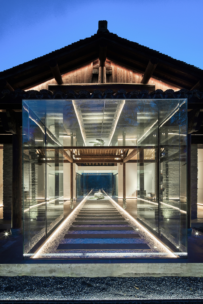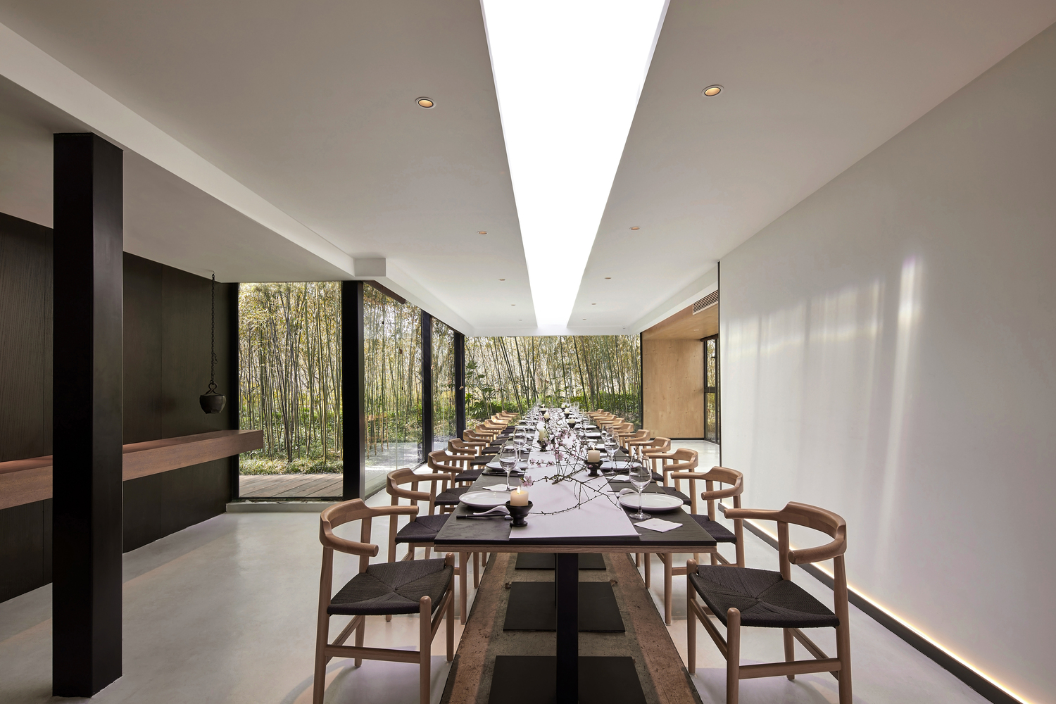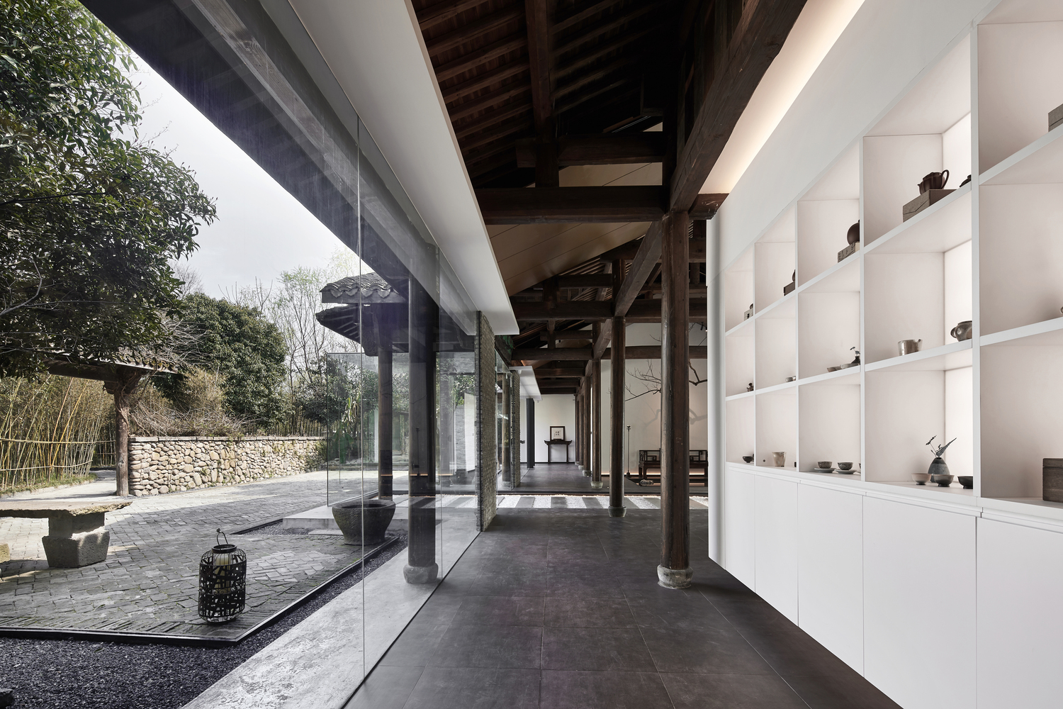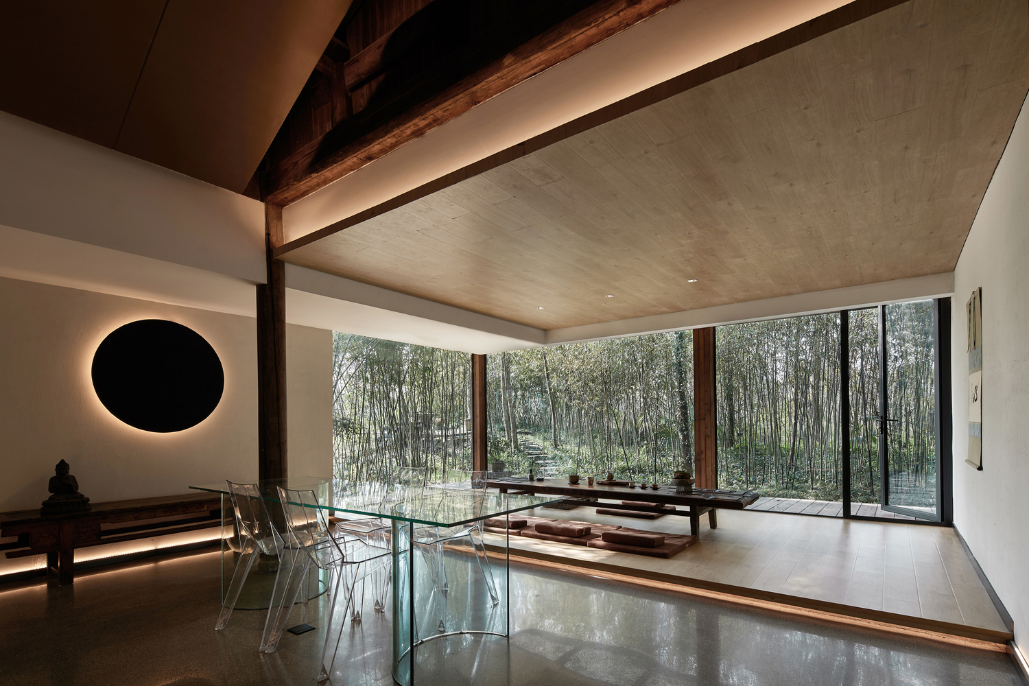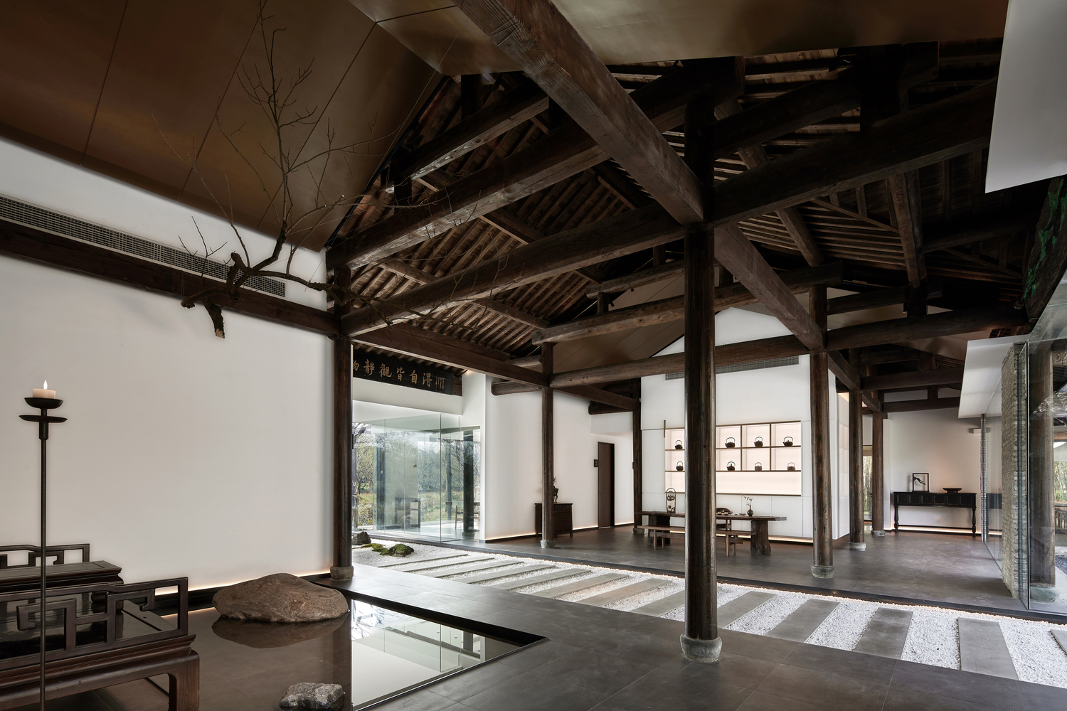 沿着入口石路缓缓深入空间,最后是一片微型自然景观,回荡着户外风光。当太阳穿透玻璃进入空间,如光和影的摆动,一切似乎都有生命,斑驳的树影,安静的佛像,聪明和美妙。在这一刻,时间无限地延长,就像一种心灵的平静。
