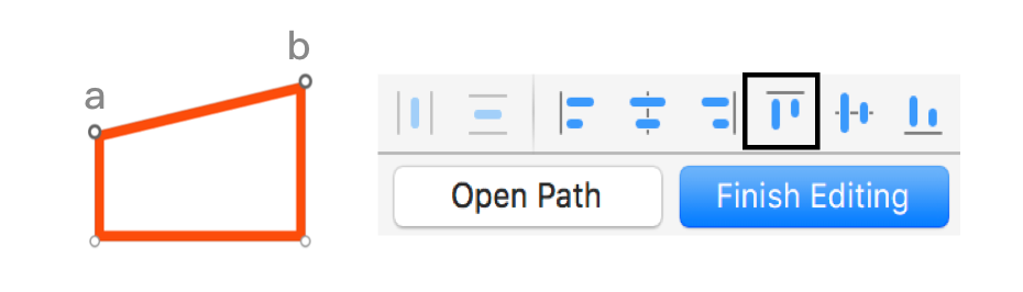 同时选中多个锚点,选择对齐方式即可将锚点进行对齐: 如将下图中的a、b点对齐 (与ai里一样)