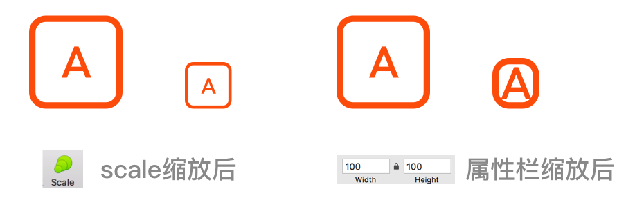 使用工具栏中的scale工具可以等比例缩放描边和效果