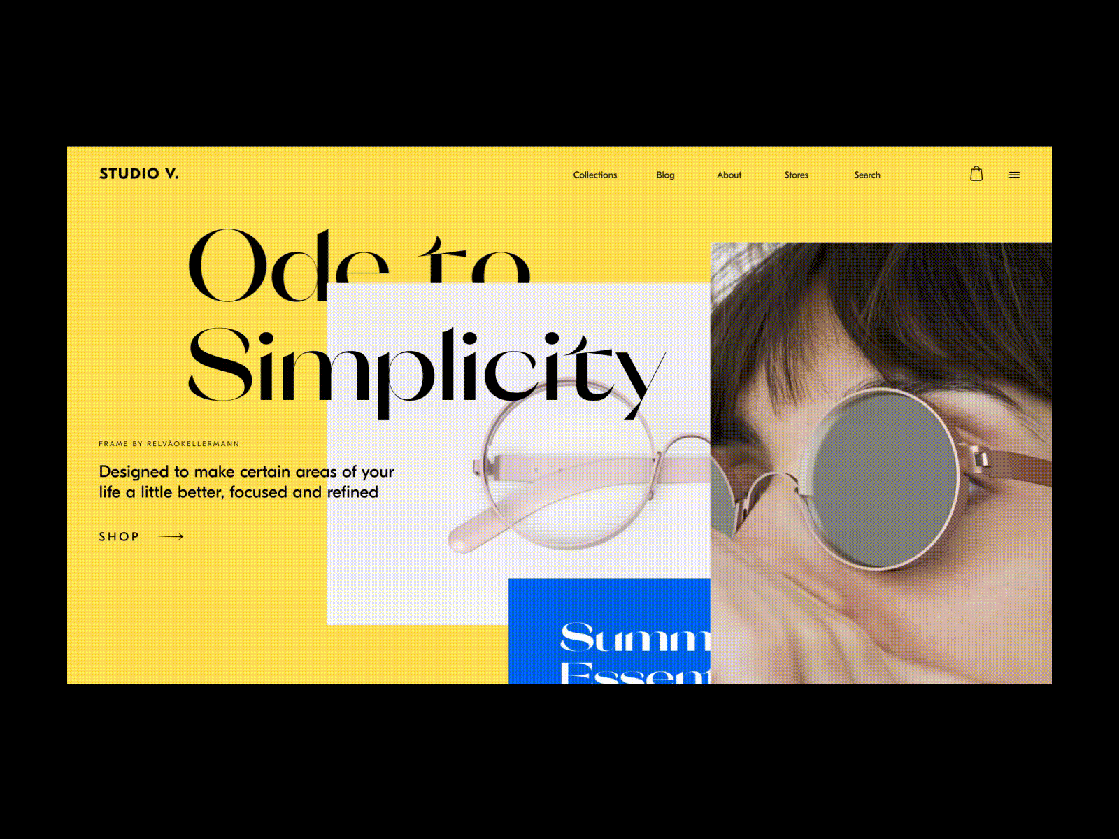 电商网站的人物部分不仅使用图片展示产品,还将其作为一个方向性的指示,关注到标语上