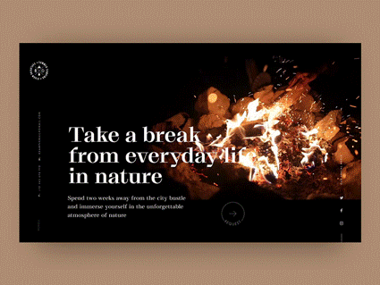 森林露营网站使用箭头提示与水平幻灯片的互动