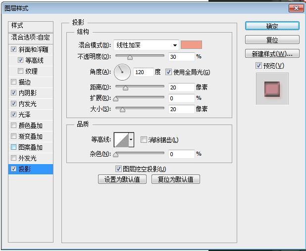 注意:虽然我设置的图层样式的数字很多都是整五整十的数,只是因为个人强迫症比较严重而已。(*^▽^*)。图层样式的数值不固定,各位小伙伴可以根据自己想要的效果多试试。